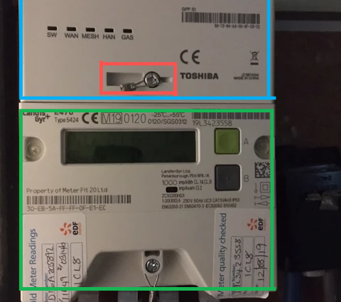 In the red box is the seal and screw securing the comms hub on top of the electric meter. The comms hub has a sim card in it which connects via the mobile phone network to a central server. The energy supply then connects to that server to get your readings.
